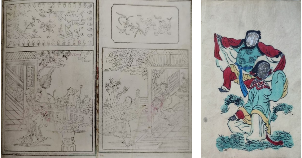 《清代徽州七彩色木刻套印版畫(huà)》縱長(zhǎng)264毫米,橫寬170毫米,厚度達(dá)5毫米,內(nèi)含多張雕刻畫(huà)譜,涉及人物、花鳥(niǎo)、紋樣等,是徽州版畫(huà)珍貴的歷史遺存。