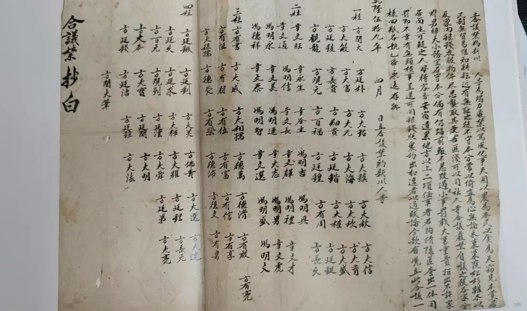 為昭公信,合議一式四份,由新川社下轄的“四柱”分別保管,作為永久憑證。乾隆五十九年四月,當方姓族人在合議上鄭重簽下各自的名字時,一份基于集體共識、規則明晰、罰則嚴厲、監督有力的鄉村自治防盜公約,便在這方寸紙頁上定格,成為守護一方平安的基石。